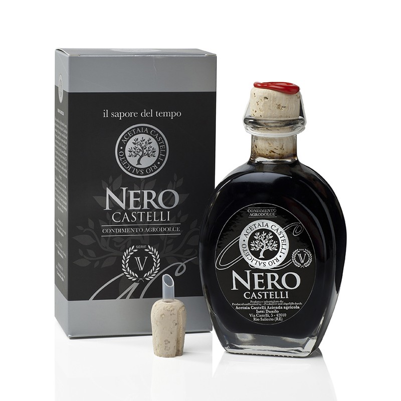 Condimento "Nero" dal gusto fortemente tendente all’agro. Colore bruno brillante, giovane e ribelle. Emana un profumo giovane e aspro.